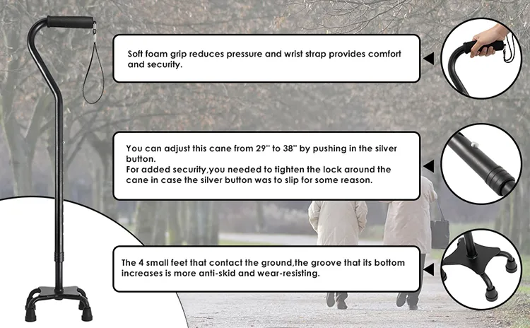 Adjustable Canes Aluminum Walking Sticks With Quad Base