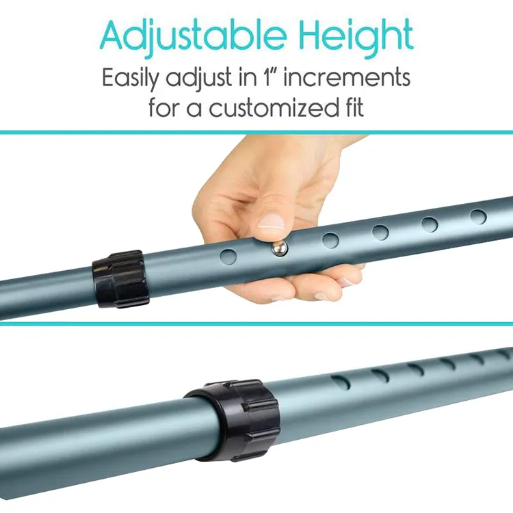 The forearm ergonomic crutches are made from durable lightweight aluminum tubing of premium strength.