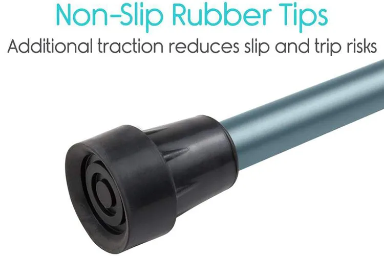 3. Easy push-button adjustments allow the height to be adjusted for a customized fit. Each crutch is capped with a non-skid, non-marking rubber tip for additional safety and security