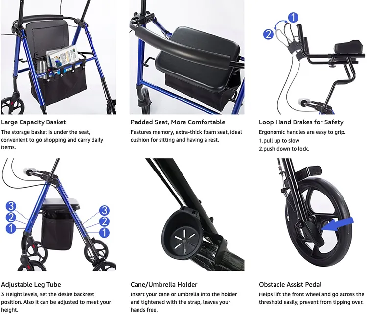 - Ideal Cushion for Sitting: The stand up rollator with adjustable height padded seat and backrest, provides customized comfort, more comfortable than other mesh material seats.