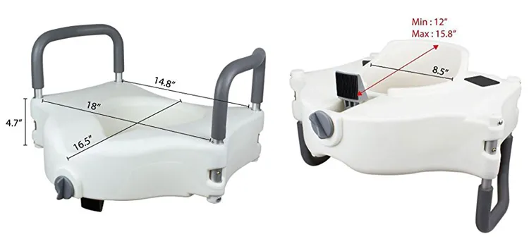 The handicap raised toilet seat adds 5-inches to the toilet height for easier sitting or lift for getting up off the toilet. Made from hygienic wipe clean white plastic, The raised toilet seat with handles is strong and durable with an ergonomically contoured design. Universally fitting, the seat is fitted or removed in minutes and comes with its own lid.