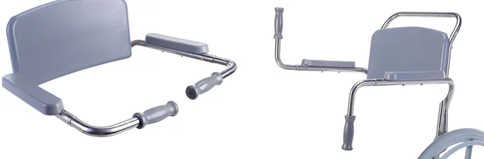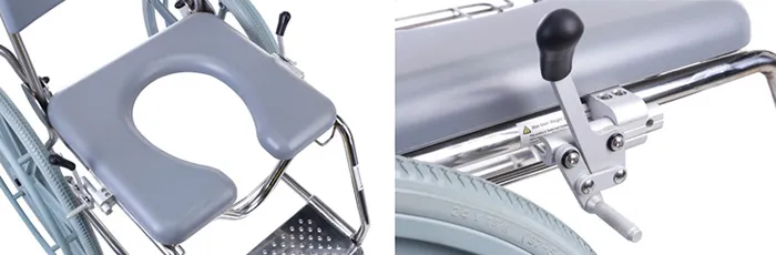 This wheeled commode shower chair made of high strength stainless steel 304 material, comes with a durable soft PU seat and Pu backrest