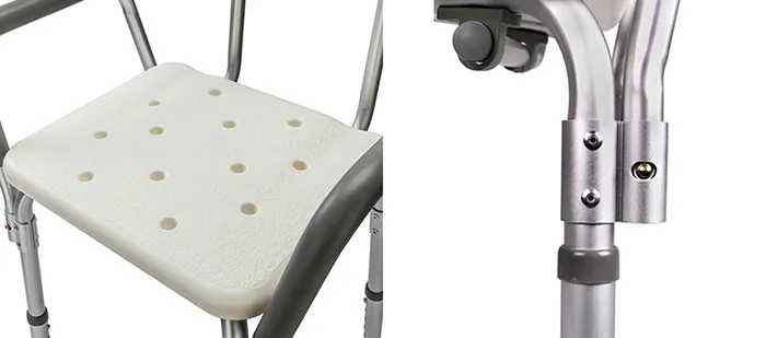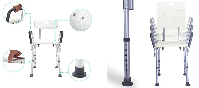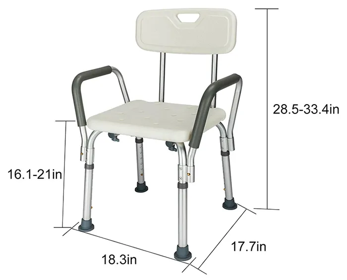 This Shower Chair with Padded Back and Arms and Back is the perfect bath bench choice for users who need extra support when getting on and off the chair. Comfortable padded hand-grips help reduce slipping. Bath Benches with a back give extra support and comfort. Non-slip, rubber feet resist slipping on the bathtub or shower floor.