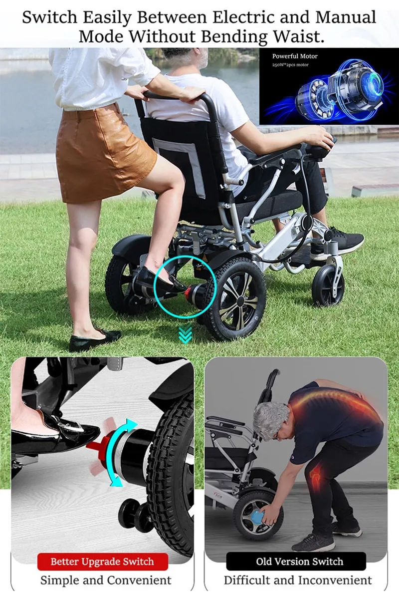 - Ergonomically Designed for Comfort: Operate this motorized wheelchair in grass, gravel, or snow, with long-lasting battery life and damping for ride comfort