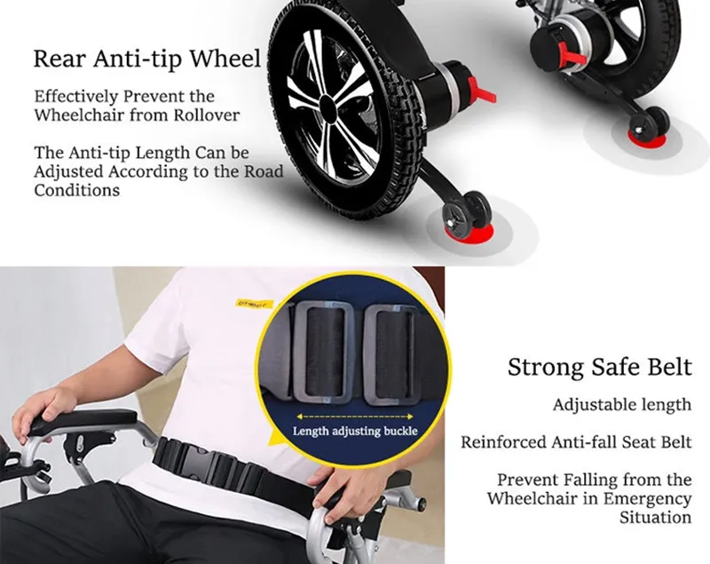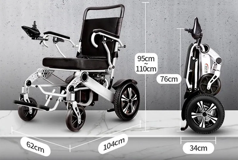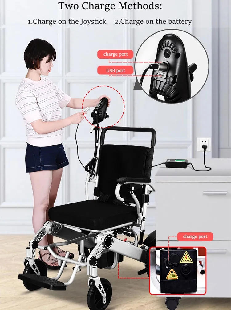 The lightweight portable electric wheelchair weighing only 39kgs, made from durable, lightweight aircraft quality aluminum making it extremely durable and able to hold up to 300 lbs. The simple folding design allows for convenient storage and easy transport.