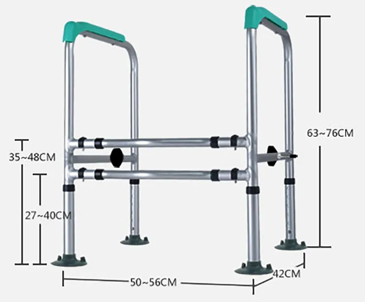 The handicap toilet safety rails constructed with a corrosion-resistant aluminum frame, this compact safety toilet rail supports up to 400 pounds. This toilet safety frames good for the elderly, seniors, adults, disabled, pregnant women.